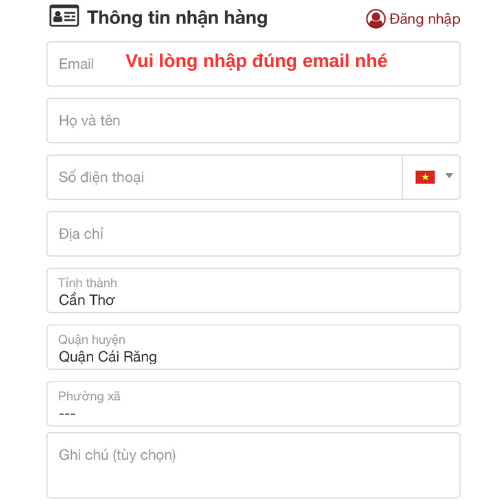 - Tại đây bạn sẽ điền các thông tin nhận hàng.